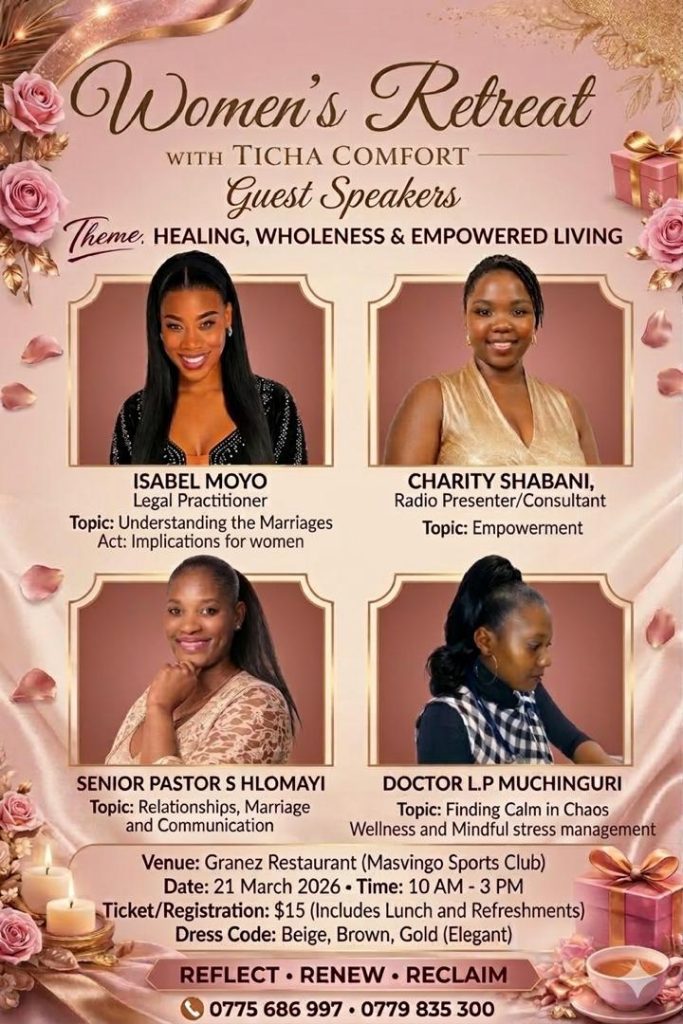 Set to take place on 21 March 2026, at Granez Restaurant (Masvingo Sports Club), this retreat promises to be more than just an event—it is a safe and nurturing space designed for restoration, growth, and empowerment.