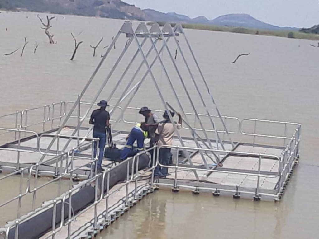 The irrigation scheme is unique as the pumps that feed into it floats above the water are supported by a pontoon (base or platform).