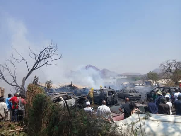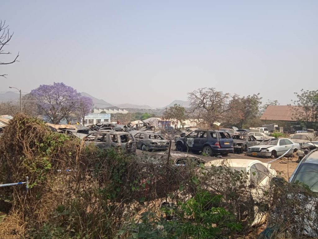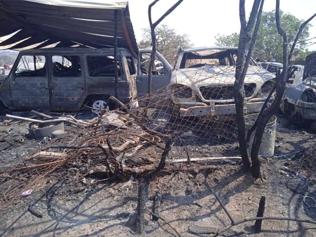It is alleged that the fire spread to the vehicles inside resulting in them catching fire. A total of 24 Mercedes Benz light vehicles were reduced to ashes while four others were damaged by fire but still have visible number plates.