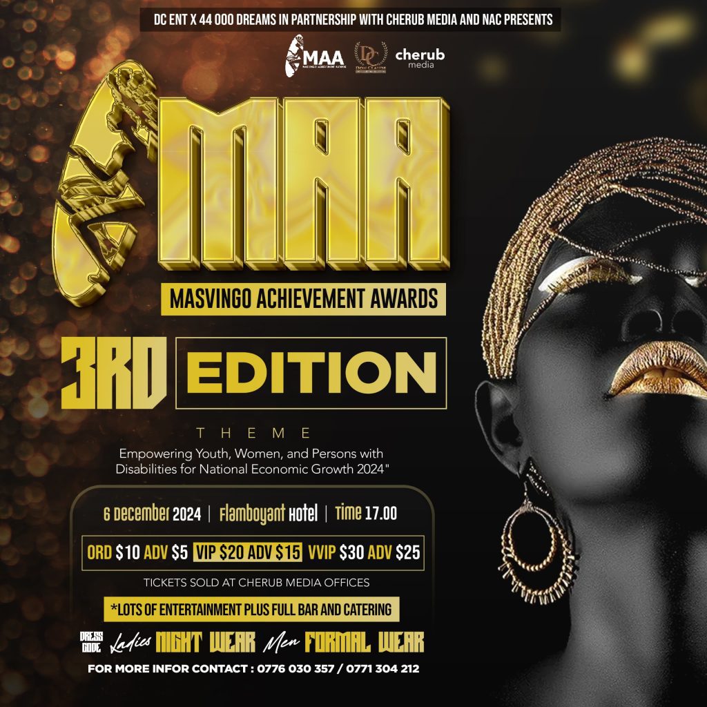 “The third edition of the Masvingo Achievements Awards will take place on December 6, 2024, at the Flamboyant Hotel from 17:00 hrs. Advance tickets are available for $7, while standard tickets go for $10. The event is organized by DC Entertainment X 44 000 dreams in partnership with Cherub Media and National Arts Council,” said Muzvaba.