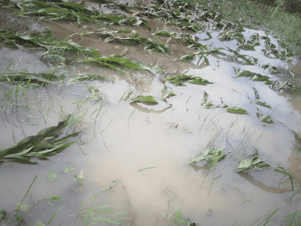 The breach of dams on Monday resulted in the release of large volumes of water downstream, sweeping away crops in fields and nearby gardens.