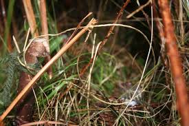 This wire loop is suspended from a branch or small tree or ground lying branches and the snare catches the animal as it is walking along the trail.