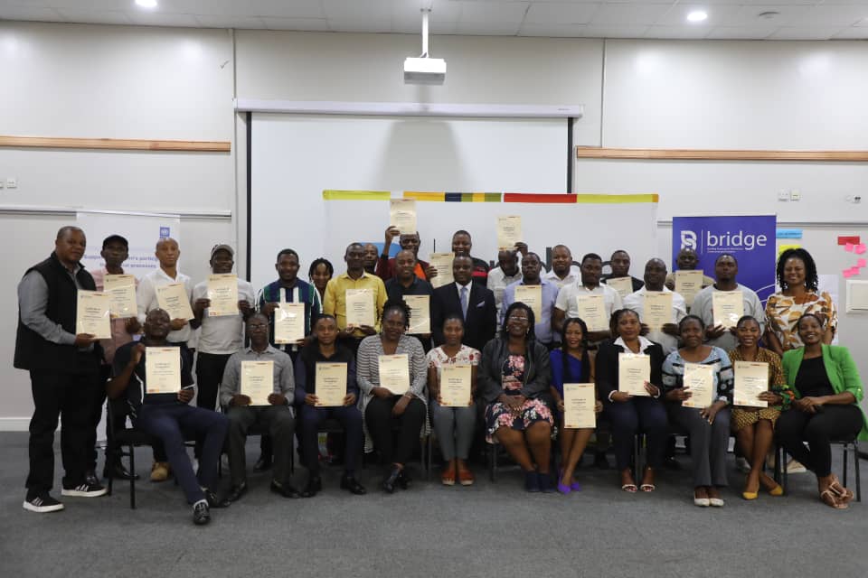 Tomsie Dlamini was the BRIDGE facilitator and awarded certificates of participation to the journalists at the end of the workshop.